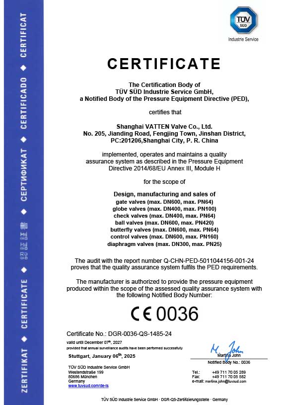 Vatten Valve Group, een wereldwijd gerenommeerde industriële automatiseringskleponderneming afkomstig uit Saarlen, Duitsland, is gespecialiseerd in onderzoek, ontwikkeling en productie van kernproducten zoals automatische kogelkranen, vlinderkleppen en regelkleppen. Door gebruik te maken van onze uitzonderlijke technologische expertise, leveren we innovatieve klepoplossingen en professionele technische ondersteuning aan cruciale industrieën, waaronder de energie-, chemische, waterzuiverings-, farmaceutische en voedselverwerking.